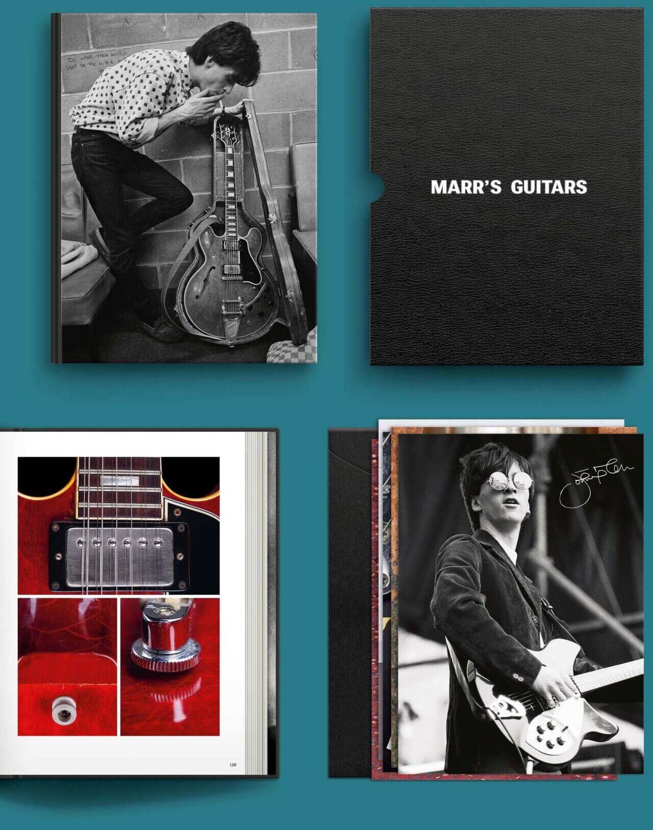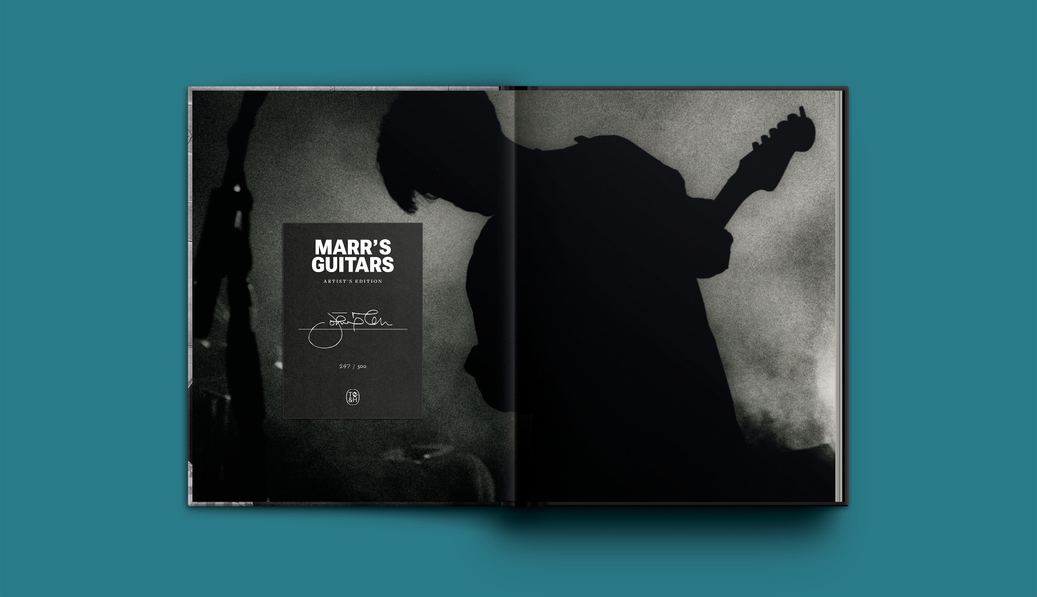 “Marr’s Guitars: a stunning photographic presentation of the guitars that defined the distinctive sounds and style of Johnny Marr with personal reflections and insights from the legendary guitarist himself.“