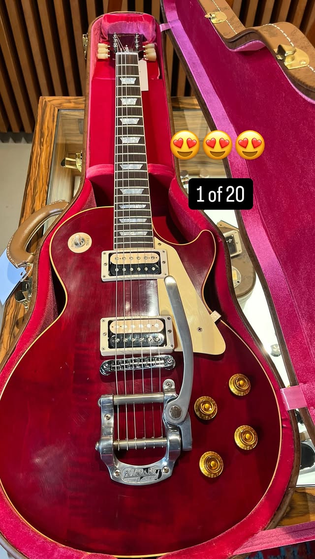 Based on the photos I’ve seen, the replica is pretty much perfect – even better than the black Custom. The attention to detail, especially in recreating the wear and tear on the Bigsby, is incredible. Hat’s off to Gibson’s Murphy Lab! I may have noticed a couple of very minor differences that are completely irrelevant, and the pickups are likely regular Gibson humbuckers rather than Seymour Duncans, but overall, it looks absolutely stunning.