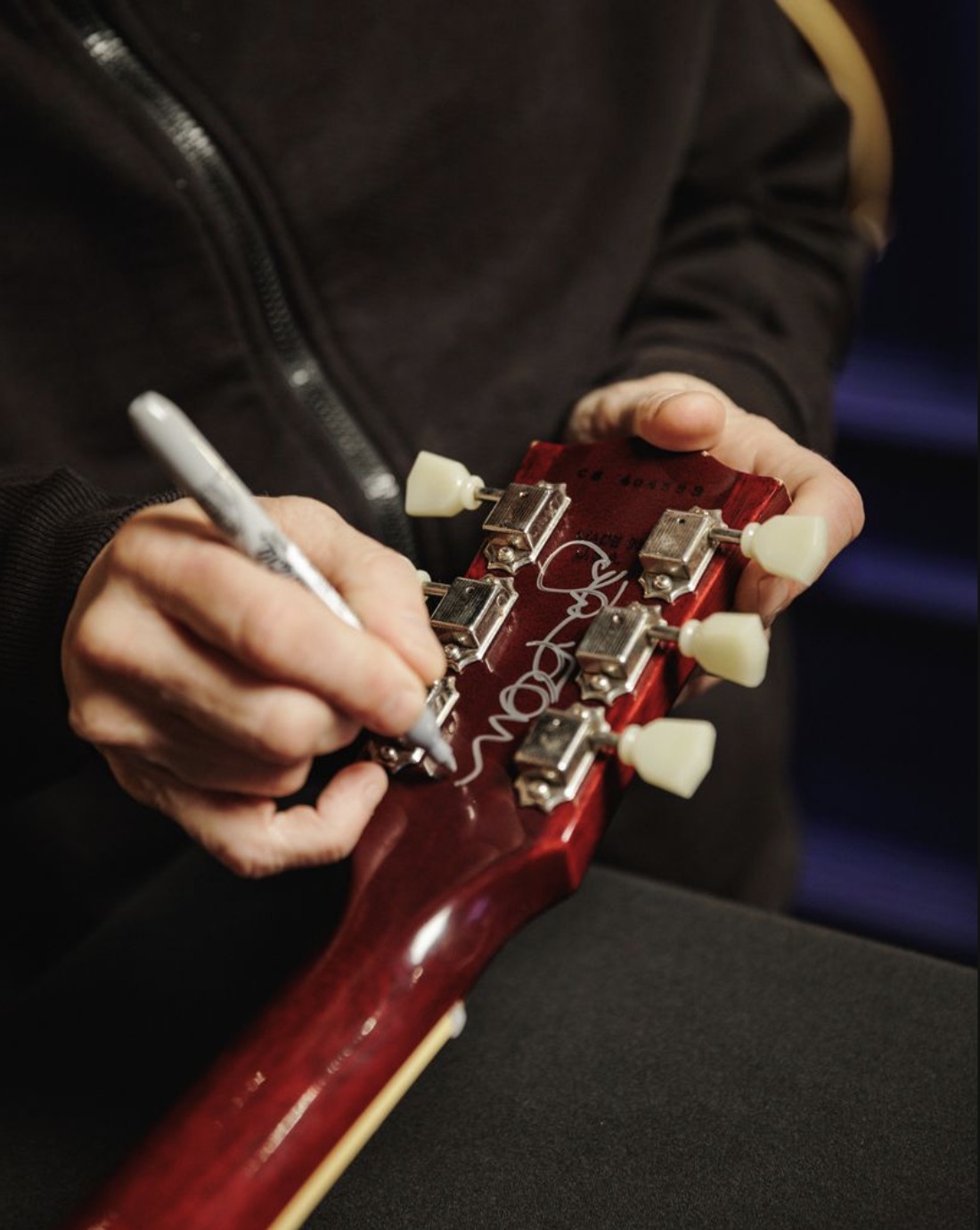 “These guitars are a faithful reproduction of my beloved 1984 Gibson Les Paul, bought in Manchester back in the day. It’s the guitar I’ve kept and used since that time on loads of different records, so I was beyond delighted to see it recreated in aid of Teenage Cancer Trust. It’s an amazing organization that I’ve had an association with for about ten years. It’s a privilege to be involved in this good cause and I’m very glad to be affiliated with it, especially when it involves making a fantastic Les Paul.“