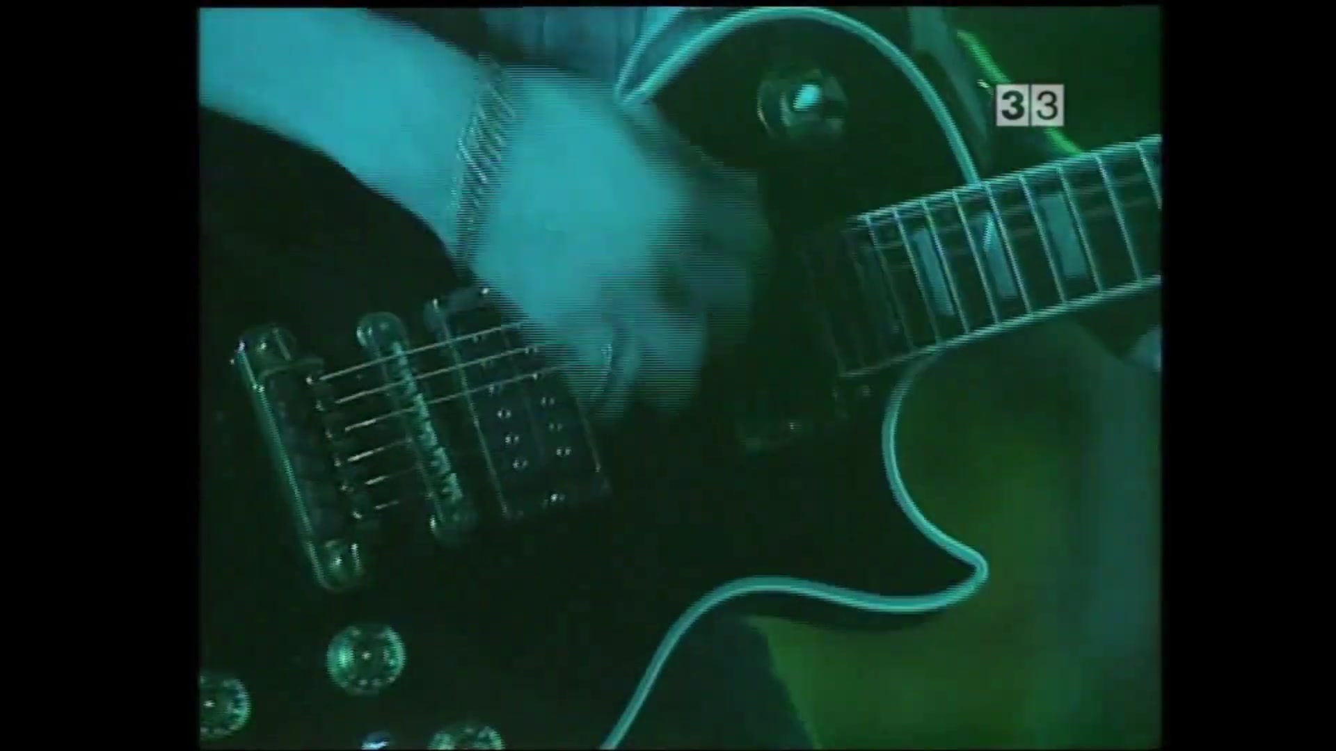 During Barbarism Begins at Home, I spot a close-up of the bridge pickup: I literally jump off the sofa to look closely. The twelve adjustable hex polepieces are unmistakable: it is a DiMarzio Super Distortion.
