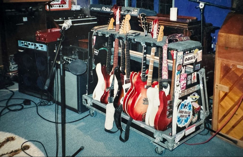 Until July 2025, no photo of Noel actually playing the guitar had ever surfaced. A preview from Jill Furmanovsky's upcoming Oasis book finally revealed the mysterious white Strat in all its glory: it is an unpublished shot from the May 1999 sessions at Chateau de La Colle Noire in southern France.3