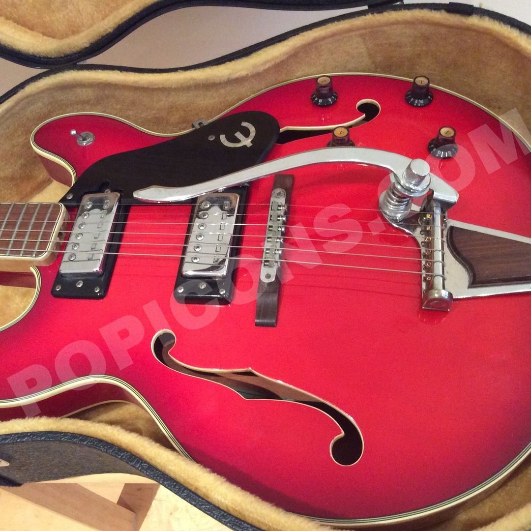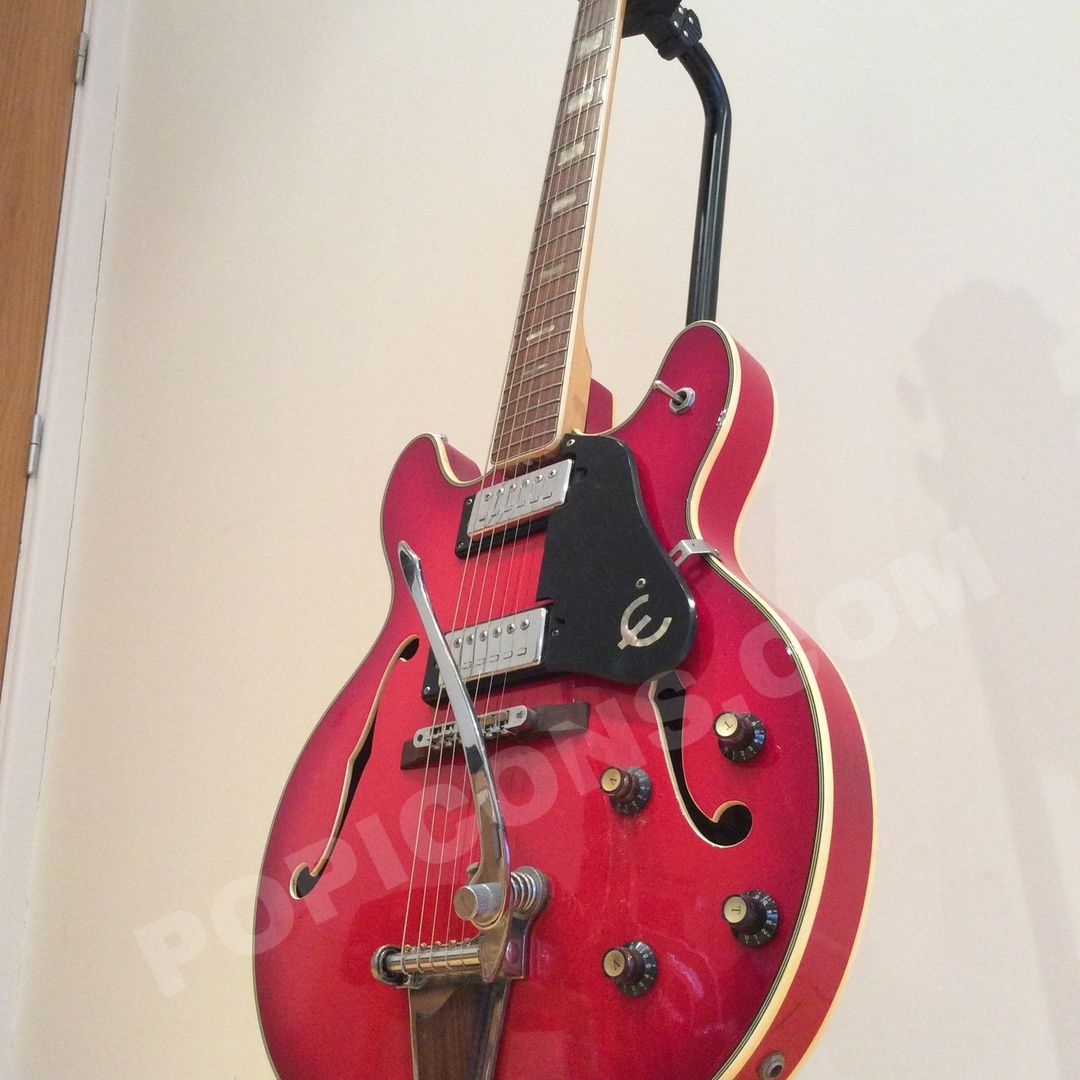 Its Cherry Red hollow-body, with a Bigsby-like vibrato arm, vaguely resembles Johnny Marr's legendary Gibson ES-355, a guitar that inspired Noel when he was younger:3