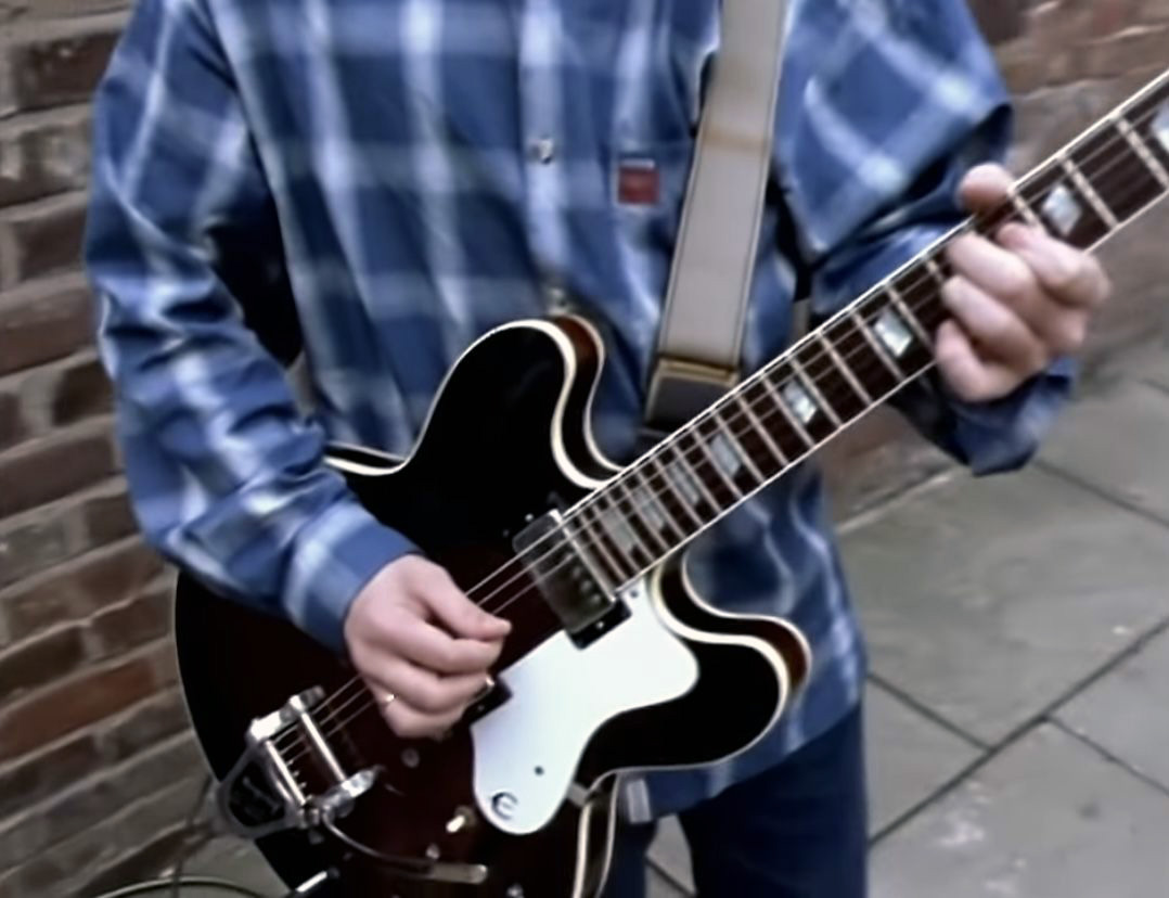 Although the available photos and videos are still of poor quality, rest assured: it is the very same guitar from those early Oasis years. What a treat!