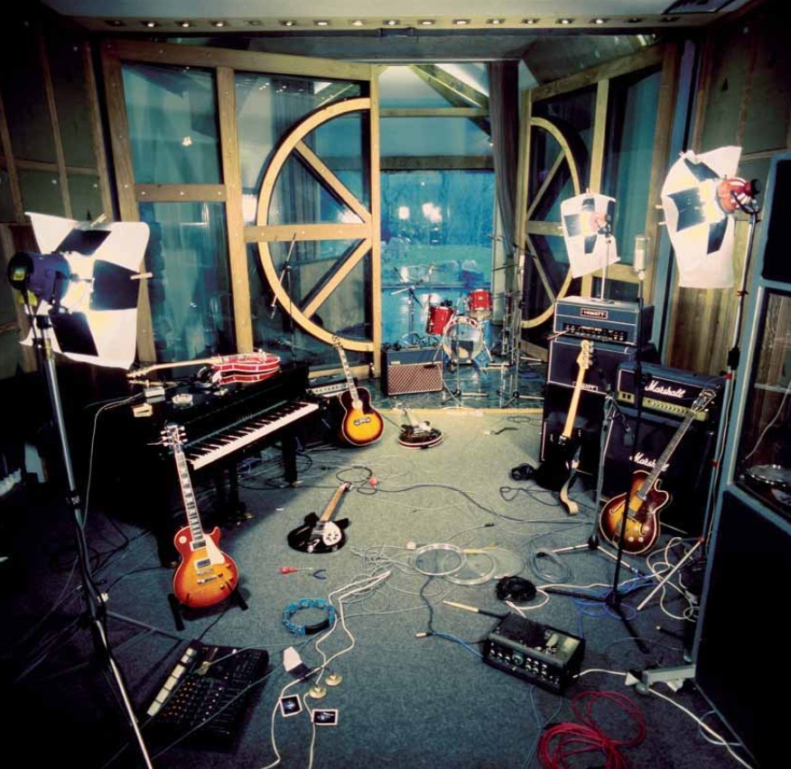 Between 8 and 24 January 1994 Oasis were at Monnow Valley studios to record their debut album, Definitely Maybe. The sleeve photo for the Supersonic single was shot there by Michael Spencer Jones: the Epiphone Les Paul can be seen right in front of the piano.
