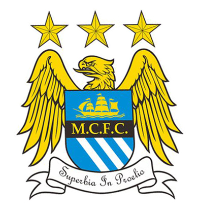 Stickers After the second Cardiff gig (11 December 1997) and before the first night at G-MEX (13 December 1997), Noel put a Manchester City badge on the pickguard. It was Man City's new logo - introduced in August 1997 for the '97-'98 season - which featured a shield, a golden eagle, three stars and the latin motto "superbia in proelio" (which means "excellence in combat").