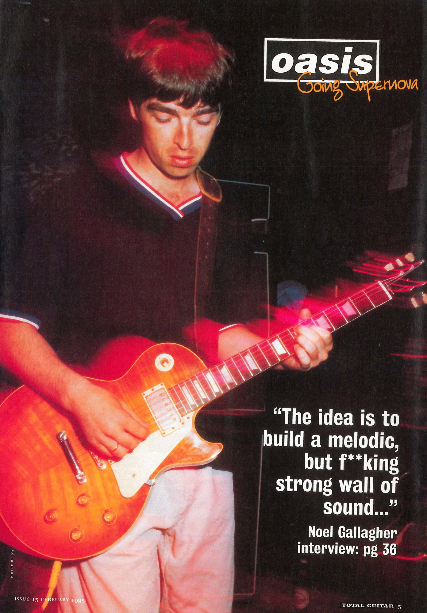 The first recorded appearance of the Sunburst Gibson Les Paul coincides with Oasis's TV debut on 18 March 1994: a live performance of their first single Supersonic, filmed at Teddington Studios for Channel 4's late-night entertainment show 'The Word'.8