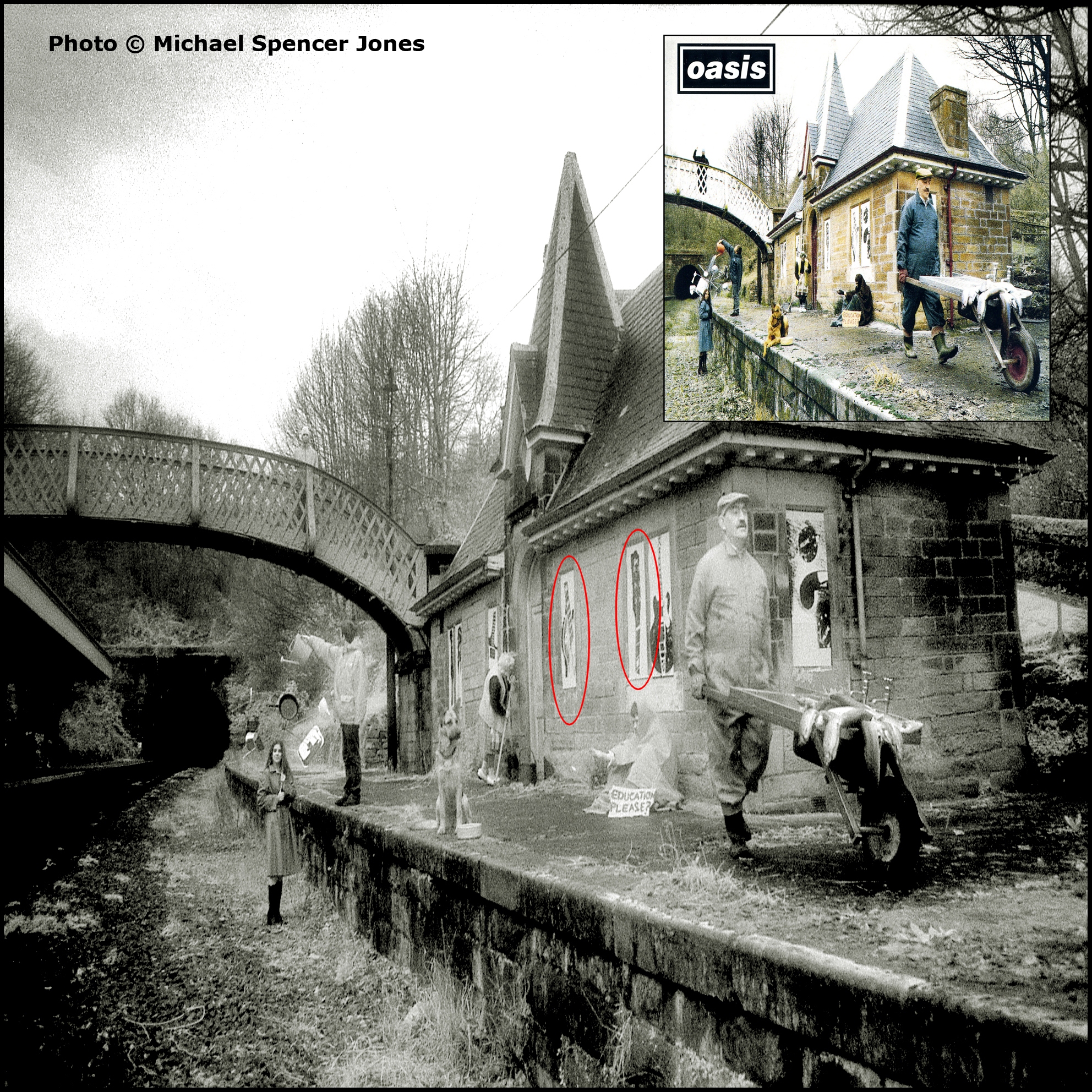 There is a peculiar easter egg on the sleeve of the Some Might Say single: a couple of shots of the LP "conversion" can be seen covering the windows of Cromford Station. The sleeve photo and the guitar pictures were taken by Michael Spencer Jones.15