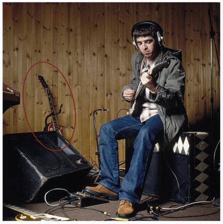 Noel instantly fell in love with Johnny's Les Paul. Not only it was used throughout the recording sessions of Definitely Maybe at Monnow Valley and at Sawmills studios: it also replaced the Epiphone Les Paul as Noel's live guitar since March 1994.