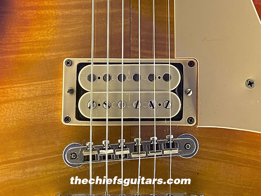 The bridge humbucker pickup is uncovered with cream bobbins. What model is it? Is it a Gibson, a Seymour Duncan or a DiMarzio? The mystery persisted for decades.