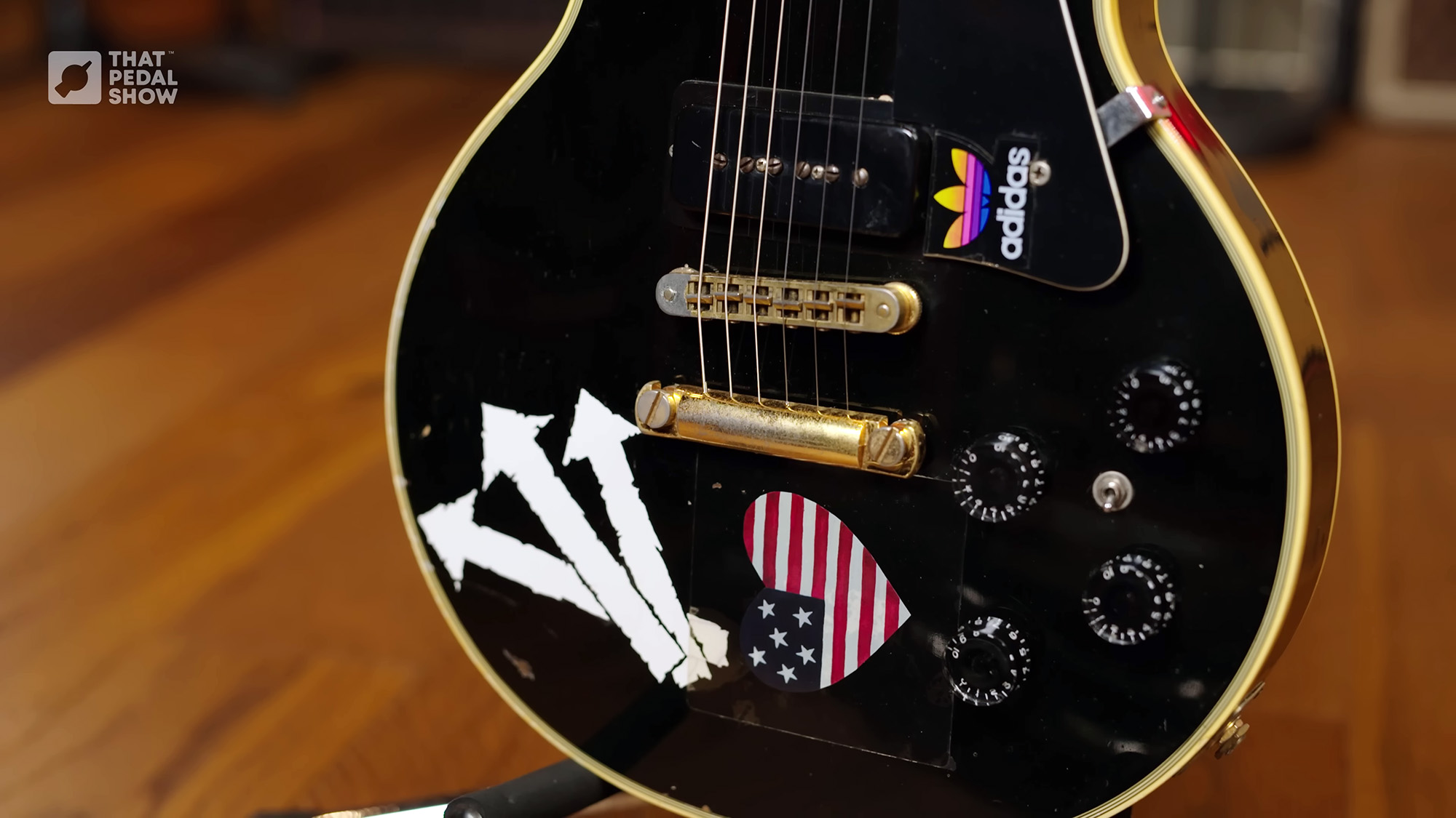 At the time, the guitar looked a little different: it had no pickguard, featured a TP-6 fine-tuning tailpiece and had gold pickup mounting rings and a gold toggle switch plate. The pickups were not the original Gibson T-Tops either (those aren't easily coil-splittable): chances are they were DiMarzios - I've covered all the details in a dedicated article on the blog.