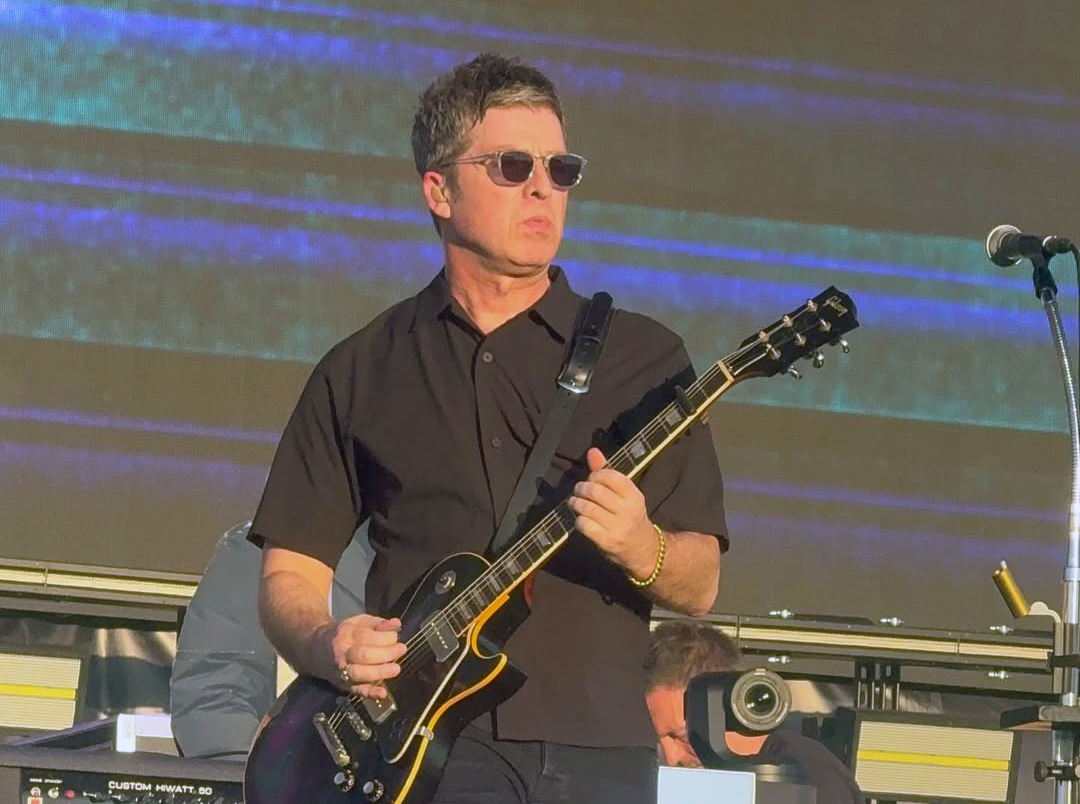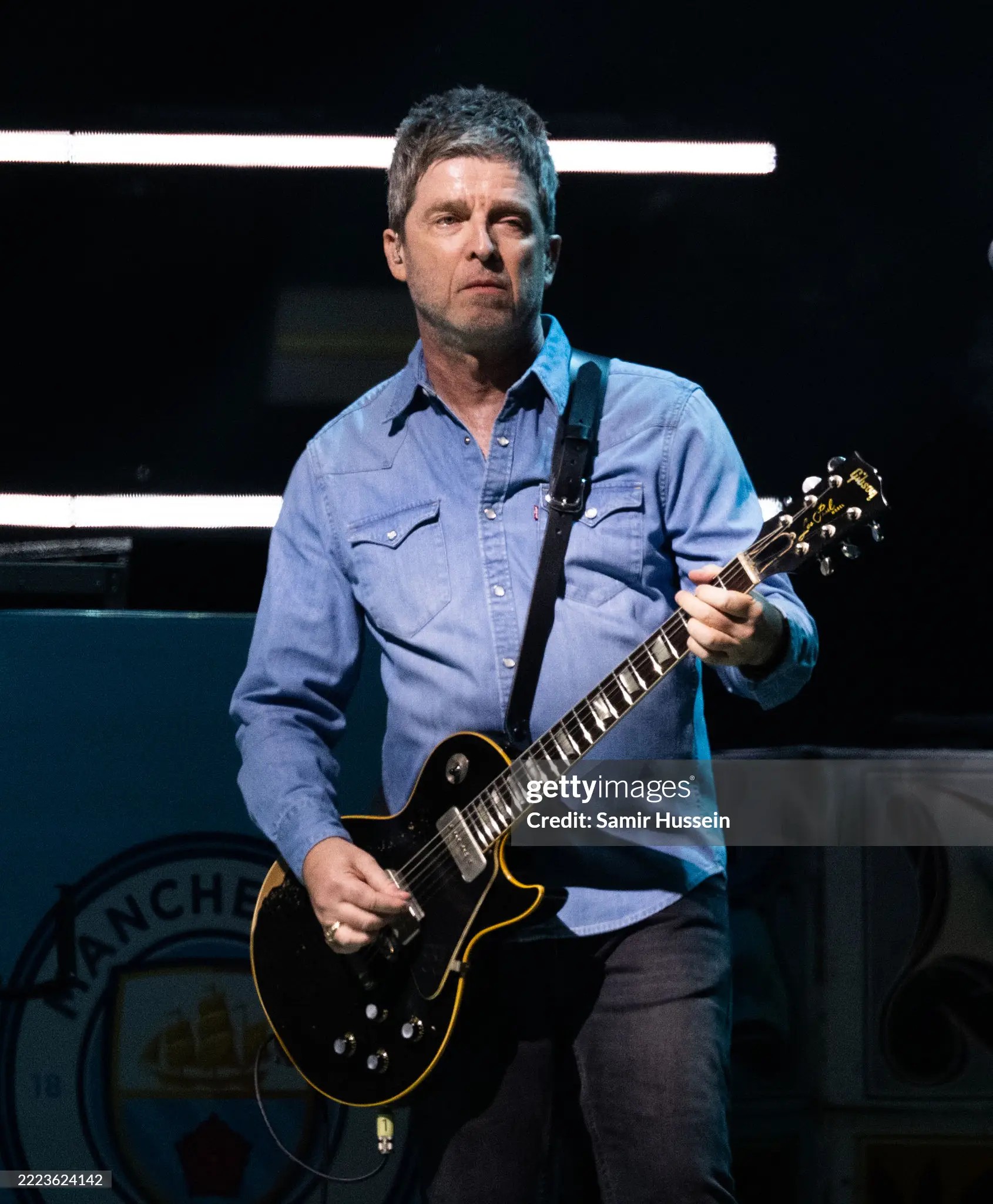 Interestingly, the guitar appears differently across various photos. In some shots, it has a lightly aged finish, while the one Noel is playing on stage shows clear signs of heavy wear and tear. The contrast is obvious, and several readers have pointed it out too.