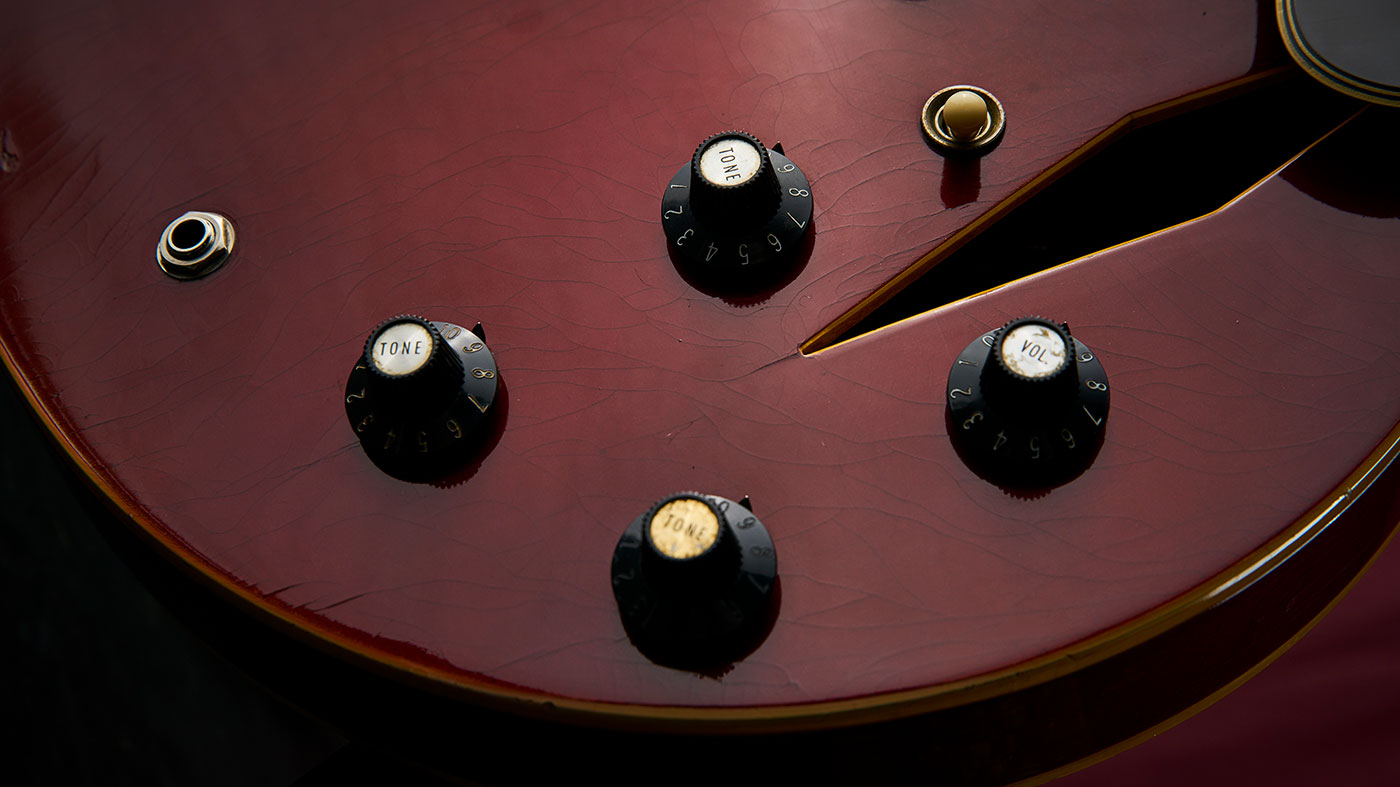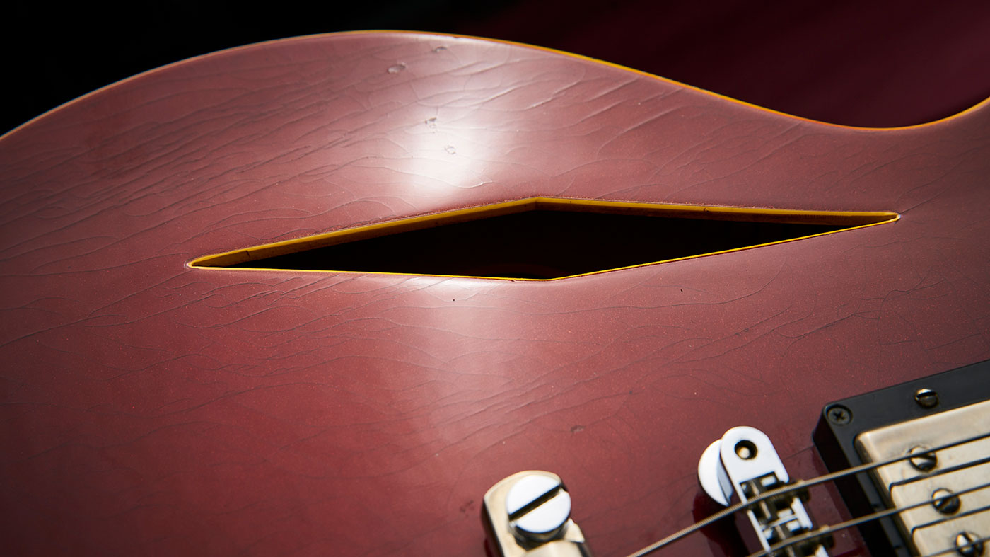 The guitar was repaired by famous luthier Philippe Dubreille (who also repaired Noel's infamous ES-355 no.2 later on). A Bigsby B-7 vibrato unit was also added sometime during or after the repair.