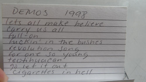 "The thing about Standing on the Shoulder of Giants is that I had a full year to sit in my 16-track bedroom studio with an engineer friend and make demos. [...] I had basically done the album twice before it even got to the band. I had written and recorded the songs on a little Walkman, and then I demoed the tracks on ADATs in my bedroom. And we ended up using a lot of stuff from the demos on the actual record because the demos were that good."
